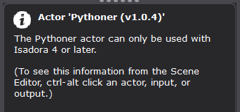 So Pythoner has been updated to present this help file if loaded into Isadora 3.