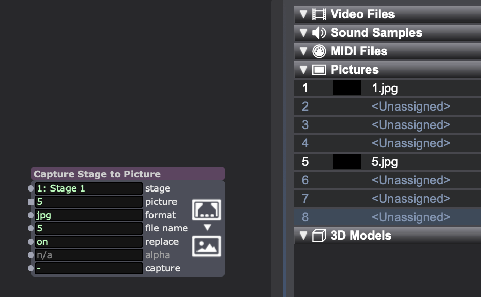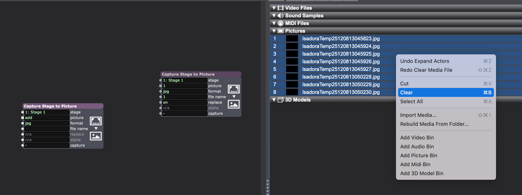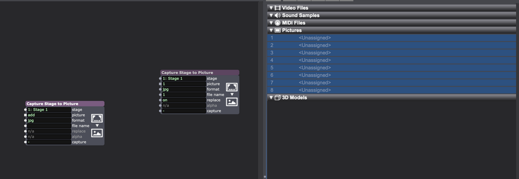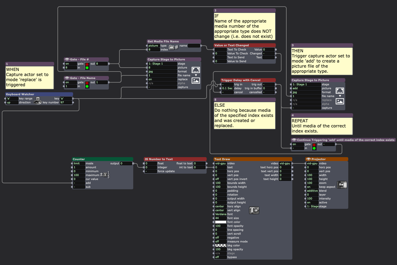 • THEN: Trigger capture actor set to mode 'add' to create a picture file of the appropriate type.