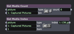 Since I ensured the top picture bin ("Captured Pictures") is the one where I intend for captured media to go, I can pre-program logic into my file that relies on knowing which bin the captured media is in (for example, logic that relies on the bin # like the Get Media Count and Get Media Index actors).