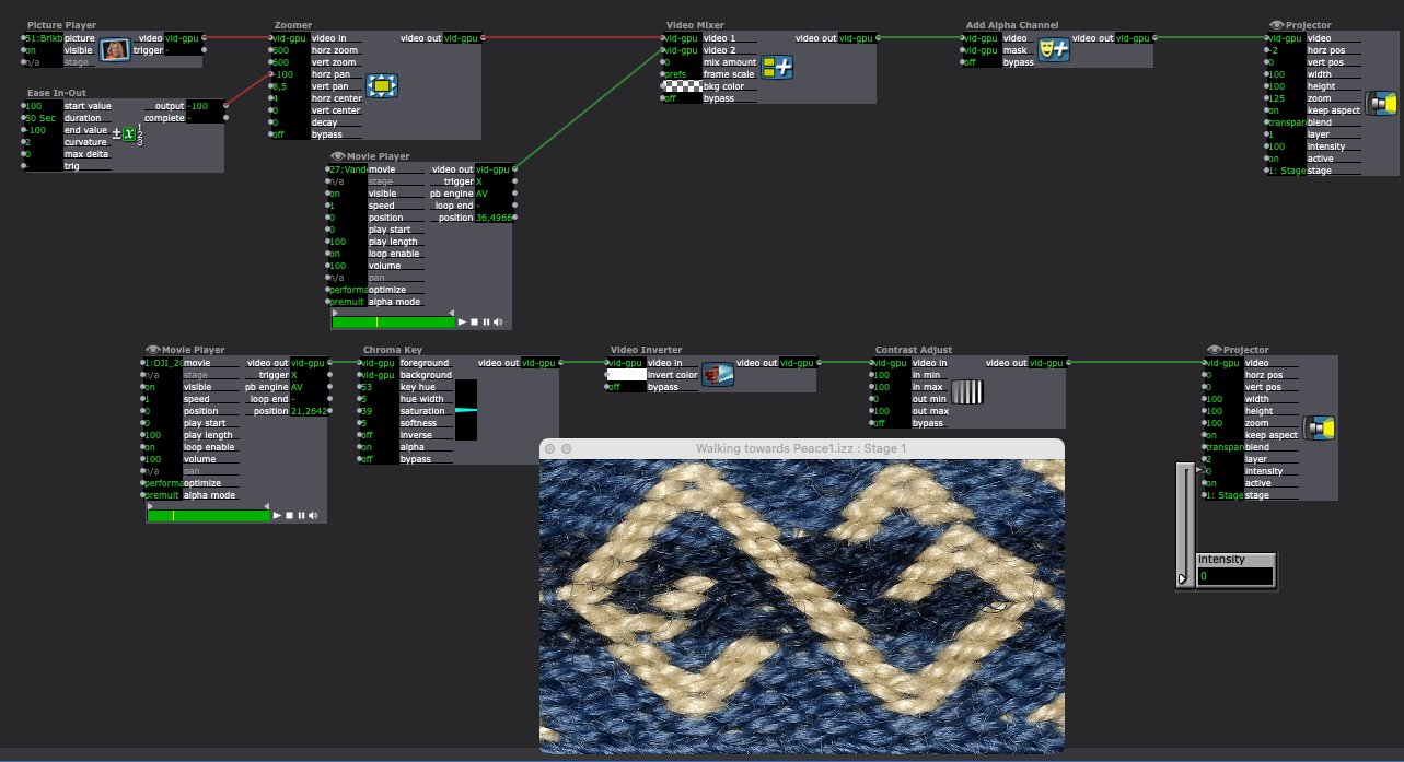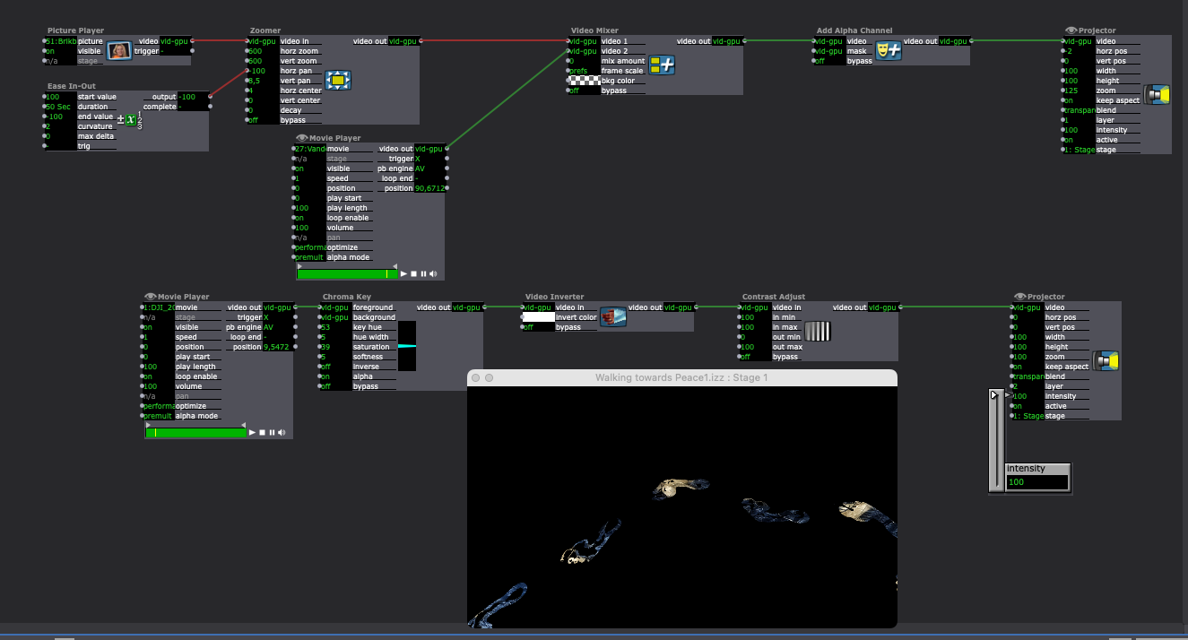 I am working in Isadora3, and I am having some troubles, with a video file that keeps showing something else than I have put in there. I have tried rebuilding it, same thing happens. I use a videomixer and mix two files, one shows as the real video, another shows as something else. Can you help me? And, what should I send? I have quite a few photos and videos in there.I have added 2 screenshots, one where you see the alpha chanel on, and one where its off, its two different videos?