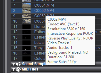 Some are 4k, and some are not. Some are 30fps, and some seem 25fps, so Isadoara will be working mega hard to process those Videos.