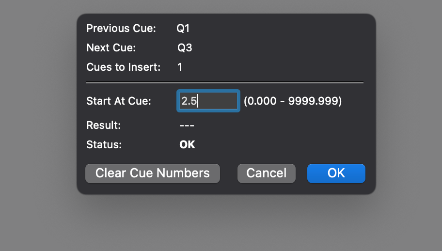 Choose your new Cue Numbers