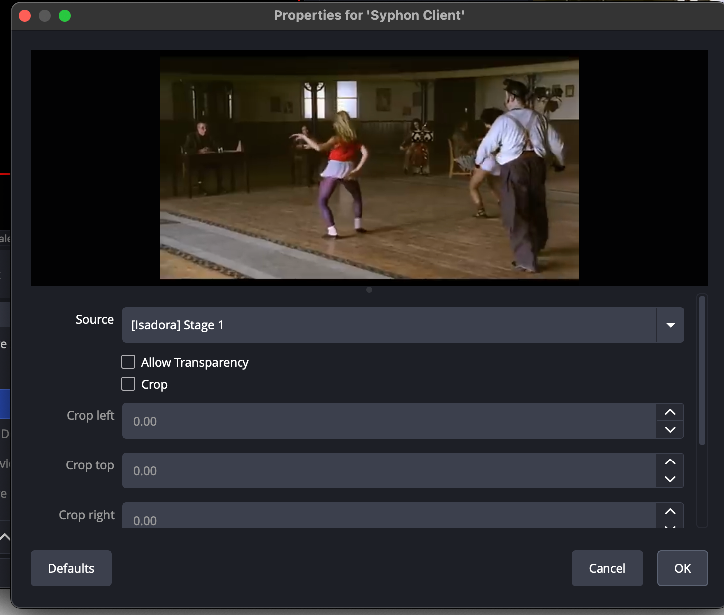 When you select Syphon, then you need to set the source e.g. Isadora Stage 1.