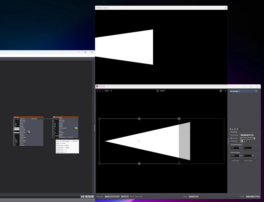 I have a super wide movie frame, which I'd like to pan horizontally, to show just a portion of the frame at each point in time. I hoped to be able to do this by publishing an X offset of the input in the projector actor and then animating it using Envelope actor, however, it seems that this offset controls the projector's output, regardless of from where I am publishing it –– input or output control of the IzzyMap. Am I missing something, or this is a feature request?
